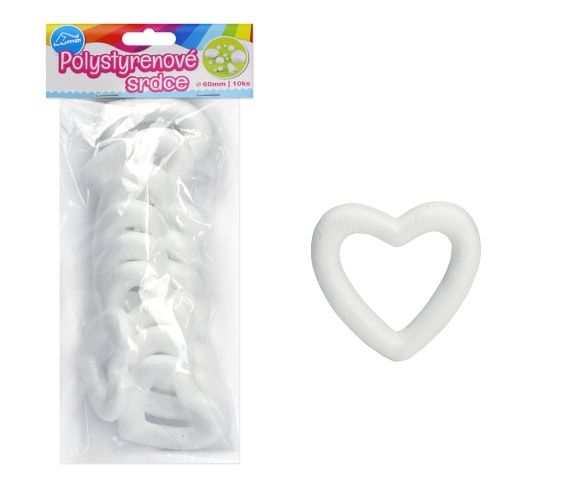Polystyrenové srdce- vhodná k sezónním dekoracím, aranžování - srdce lze různě dekorovat, pomalovat, polepit - rozměr: 60mm- 10ks v baleníUPOZORNĚNÍ:Není hračka. Určeno k dekorativním účelům. Doporučujeme dohled dospělé osoby. Nevkládat do úst, hrozí nebezpečí vdechnutí nebo zalknutí.