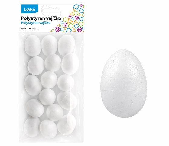 Polystyrenová vajíčka vhodná k sezónním dekoracím, aranžování a k využití v ruční výtvarné tvorbě. Vajíčka lze různě dekorovat, pomalovat, polepit.Průměr: 4cm