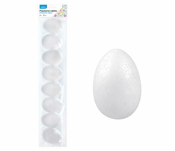 Polystyrenová vajíčka vhodná k sezónním dekoracím, aranžování a k využití v ruční výtvarné tvorbě. Vajíčka lze různě dekorovat, pomalovat, polepit. Rozměr: 8cm