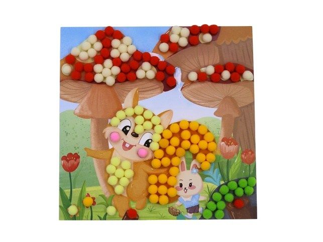 Pompom kreativní sada Zvírátka obsahuje 3 samolepicí obrázky a 565 kusu barevných pompomu. Stací podle predlohy prilepit pompomy na urcená lepivá místa a vytvorit tak originální obrázek. Tvorení je jednoduché, zábavné a podporuje jemnou motoriku i kreativitu detí.