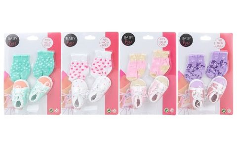 Sada ponožek a botiček pro panenky. Vhodné pro panenku o velikosti 40 cm. Rozměry balení cca 16 x 23,5 x 3 cm. Věk 3+
