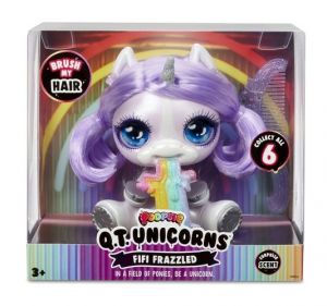 Rozkošní malí Q.T. Jednorožci voní třeba po jahodách, vanilce nebo úplně jinak. Každý z nich představuje jinou emoci. Sběratelské postavičky můžeš najít v různých barvách, mají dlouhé česatelné vlásky a některé mají křídla. Ultra vzácný Q.T. Jednorožec plive duhu. Obsah balení: 1 Q.T. Jednorožec
