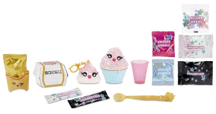 "Vytvoř vlastní kouzelný sliz, který je barevný, voní a ukládá se do přívěsku ve tvaru hovínka. Sliz můžeš vyrobit podle sebe. Jednou stačí přidat třpytky, podruhé speciální efekty, nebo můžeš použít všechny ingredience. Různé barvy, vůně a úplně nové struktury slizu. V tomto Balíčku najdeš 10 překvapení. Obsah balení: 2 bílé sáčky s práškem na výrobu slizu (Unicorn Food) 2 černé sáčky s práškem na výrobu slizu (Unicorn Food) 1 sběratelský kelímek 1 odměrka 1 lžička 1 sáček s drobnými třpytkami (Unicorn Shimmer) perličky s tajemnou vůní 1 sáček se třpytkami v ultra vzácných baleních (Unicorn Sparkle) 1 kouzelný sáček (Unicorn Charms) v super ultra vzácných baleních 1 sběratelský přívěsek ve tvaru hovínka 1 sběratelský plakátek"