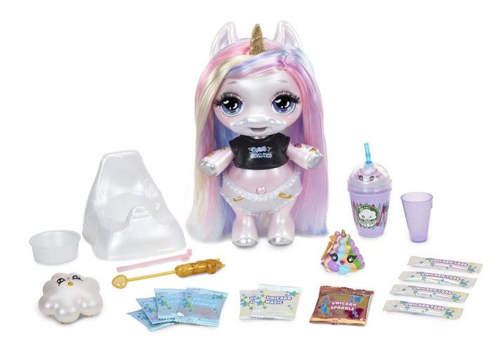 hovínko (barevný sliz). Součástí: • 1 Poopsie jednorožec • Třpytivý