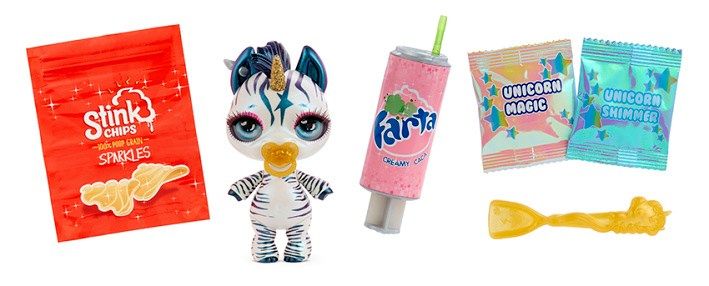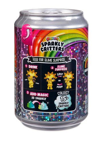 Objev, jaká Třpytivá potvůrka se schovává v tvojí plechovce. Potvůrce dej napít, pořádně s ní zatřes, stlač tváře potvůrky a zjisti, kudy vyjde kouzelný sliz ven. Plive nebo kaká? Třpytivá potvůrka dělá oboje! Sbírej duhu!