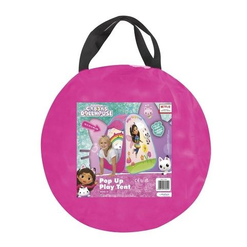 Dětský látkový stan s licencí Gabby Dolls‚House. Rozměr složeného stanu 75x75x90cm. Stan je snadno složitelný i rozložitelný, díky kvalitním pružným drátkům v obvodu stanu. Stan má nahoře síťovinu. Baleno v krabici. Doporučený věk 2+