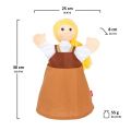 Textilní maňásek oblíbené pohádkové postavičky s bohatými dlouhými vlasy, který pod jednouduchou zástěrou skrývá překrásné šaty.
