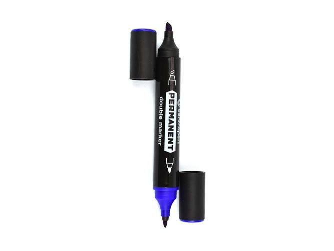 Popisovač Centropen 1666 modré barvy. Marker disponuje dvěmi hroty, na každé straně jeden. Hroty jsou o průměrech 2,5 a 4 mm. Vhodné na papír, gumu, kůži, plasty a kovy. Popisovač obsahuje pernamentní inkoust na alkoholové bázi, odolný vodě a terplotě do 100 °C. Po použití nezapomeňte vždy nasadit vršek.