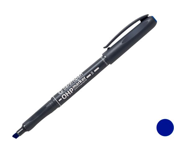 Speciální permanentní popisovač s ergo držením, určený pro psaní na neporézní povrchy jako jsou fólie pro zpětné projektory, film, kov, plast, pryž, sklo, porcelán. Permanentní inkoust na alkoholové bázi, otěruvzdorný, vodou nesmývatelný. Písmo lze odstranit lihem. Ventilační chránítko, po použití uzavřít.Barva: modrá Šířka stopy: 1 - 3mmKlínový hrot