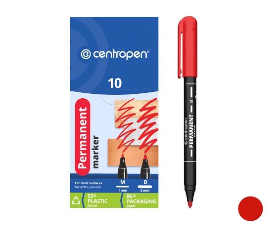 Univerzální permanentní popisovač, píše na většinu povrchů- je vhodný k psaní na papír, pryž, kůži, plast, beton, kámen, dřevo, film, fólie, kov, sklo, porcelán- permanentní, otěruvzdorný inkoust na alkoholové bázi- odolný vodě a teplotě do 100°C- ventilační chránítko- barva: červená- šíře stopy: 2mm- válcový hrotUPOZORNĚNÍ:Není hračka. Doporučujeme dohled dospělé osoby. Nevkládat hrot do úst, hrozí nebezpečí požití tekutiny. Udržujte mimo dosah očí a tváře.