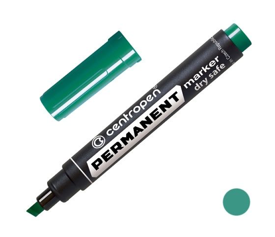 Permanentní popisovač, píše na většinu povrchů. Je vhodný k psaní na beton, kámen, dřevo, film, fólie, kov, papír, plast, pryž, sklo, porcelán. Nevysychavý, inkoust na alkoholové bázi, bez zápachu. Odolný vodě, otěru a povětrnostním vlivům. Ventilační chránítko, vydrží i 14 dní bez chránítka.Barva: zelenáŠíře stopy: 2-5mmKlínový hrot speciál