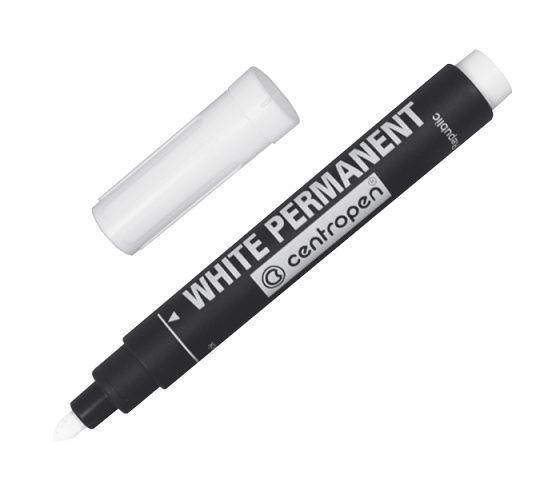 Univerzální permanentní značkovač určený pro hobby a průmysl. Bílý světlostálý inkoust na vodní bázi píše na povrchy většiny materiálů. Po dokonalém zaschnutí odolá vodě, otěru a povětrnostním vlivům. Skladovat ve vodorovné poloze. Ventilační chránítko, po použití uzavřít.Barva: bíláŠířka stopy: 2,5mmVálcový hrot