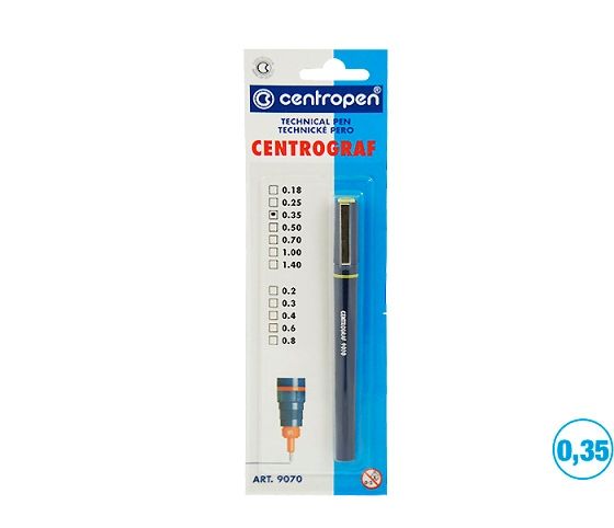 Technické trubičkové pero s ventilačním chránítkem hrotu. Splňuje normy ČSN, ISO, DIN. Šíře hrotu: 0,35mm