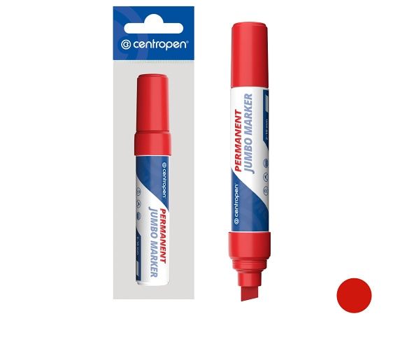 Univerzální značkovač s permanentním inkoustem na alkoholové bázi- odolá vodě, otěru, povětrnostním vlivům a teplotě do 100 °C- píše téměř na všechny druhy povrchů- ventilační chránítko- barva červená- šíře stopy 2 - 10mm- speciální klínový hrot jumboUPOZORNĚNÍ:Není hračka. Doporučujeme dohled dospělé osoby. Nevkládat hrot do úst, hrozí nebezpečí požití tekutiny. Udržujte mimo dosah očí a tváře.