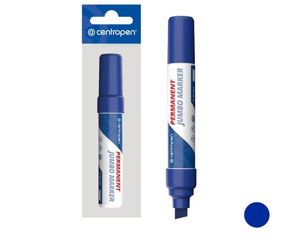 Univerzální značkovač s permanentním inkoustem na alkoholové bázi- odolá vodě, otěru, povětrnostním vlivům a teplotě do 100 °C- píše téměř na všechny druhy povrchů- ventilační chránítko- barva: modrá- šíře stopy: 2-10mm- speciální klínový hrot jumboUPOZORNĚNÍ:Není hračka. Doporučujeme dohled dospělé osoby. Nevkládat hrot do úst, hrozí nebezpečí požití tekutiny. Udržujte mimo dosah očí a tváře.