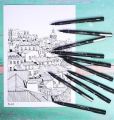 Tuhá pigmentová inkoustová linka se snadno používá pro akvarel, protože inkoust se nerozmazává, ani když je vlhký