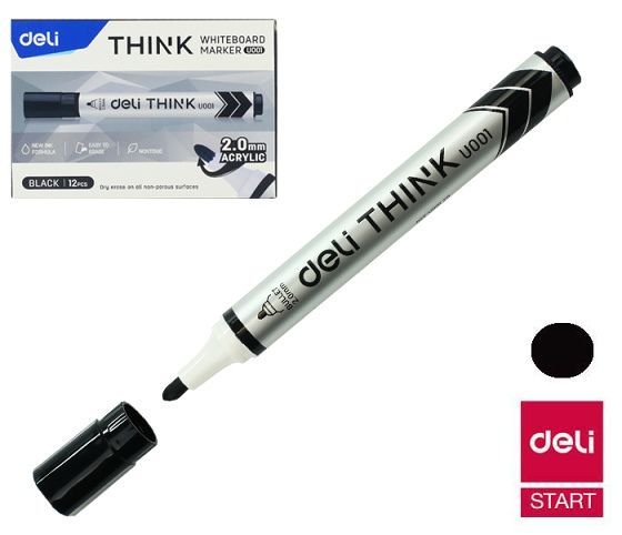 Popisovač DELI EU00120 černý kulatý stíratelný