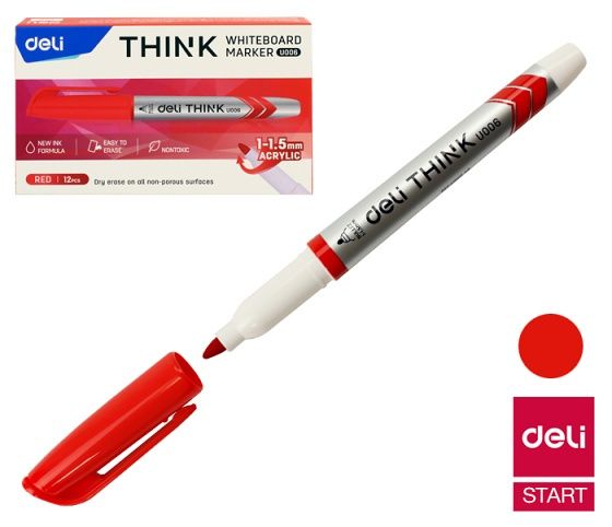 Popisovač DELI EU00640 červený stíratelný