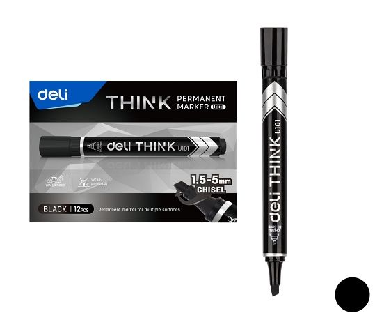 Popisovač DELI EU10120 černý zkosený permanent (8576)