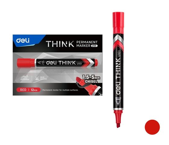Popisovač DELI EU10140 červený zkosený permanent (8576)