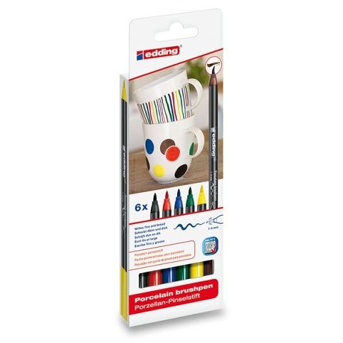 Sada speciálních popisovačů na porcelán s inkoustem na vodní bázi. Barva rychle zasychá a nerozmazává se. Hrot v podobě flexibilního štětce, který je vhodný pro větší plochy i drobné detaily. Souprava 6 základních barev. Šíře hrotu 1-4 mm