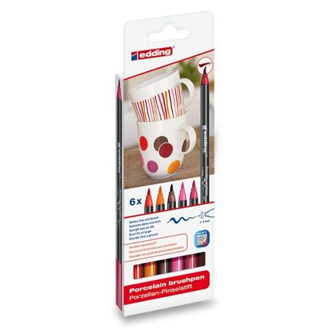 Souprava speciálních popisovačů na porcelán s inkoustem na vodní bázi. Barva rychle zasychá a nerozmazává se. Hrot v podobě flexibilního štětce, který je vhodný pro větší plochy i drobné detaily. Sada 6 kusů popisovačů v různých odstínech červené. Šíře stopy 1-4 mm