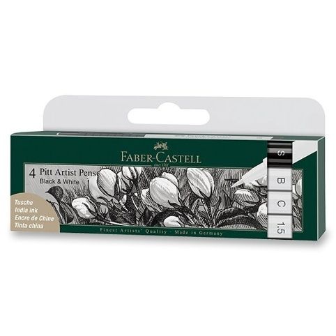 Popisovač Faber-Castell Pitt Artist Pen 4 kusy, black & white