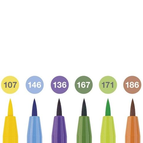 Popisovač Faber-Castell Pitt Artist Pen Brush 6 ks, hrot B, letní odstíny