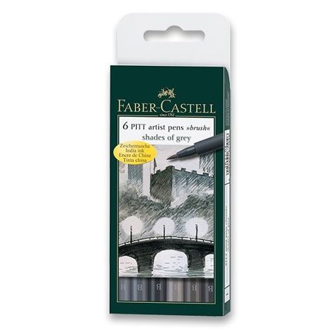 Popisovač Faber-Castell Pitt Artist Pen Brush 6 ks, odstíny šedé