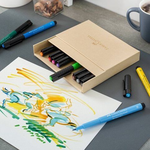 Moderní umělecký popisovač Faber-Castell Pitt Artist Pen Brush pro tušové skicování, kreslení a malbu se štětečkovým hrotem, 12 ks.