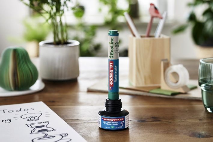 Permanentní ekologický fix z rady Ecoline je ideální pro psaní na flipchartový papír, prezentacní papír. Nejméne 90 % celkového plastu použitého v popisovaci je vyrobeno z recyklovaného materiálu. K dispozici je v cerné, cervené, modré a zelené barve. Je vybaven kulatým hrotem o šírce stopy 1,5-3 mm. Rychleschnoucí, doplnitelný, odolný vuci svetlu. Díky technologii „cap-off“ lze nechat fix i nekolik týdnu bez vícka, aniž by vyschl (ISO 554).