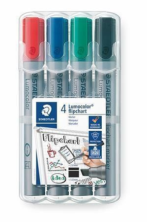 Popisovač na flipchart "Lumocolor 356 B", sada, 4 barvy, klínový hrot, STAEDTLER