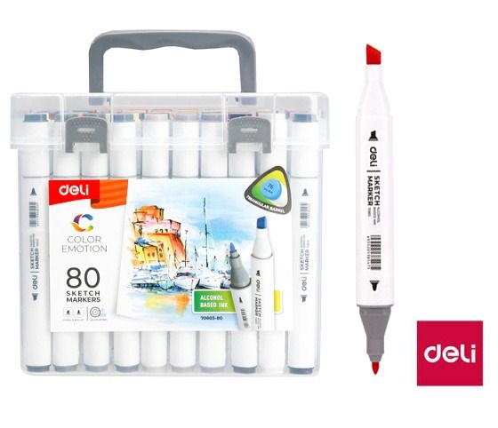 Popisovač skicovací oboustranný Color Emotion 80 barev DELI E70803-80