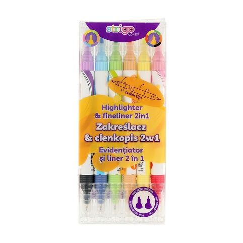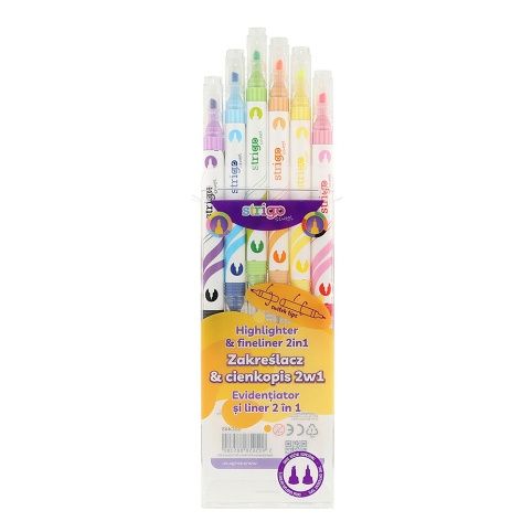 Popisovače a zvýrazňovače 6 ks 2v1