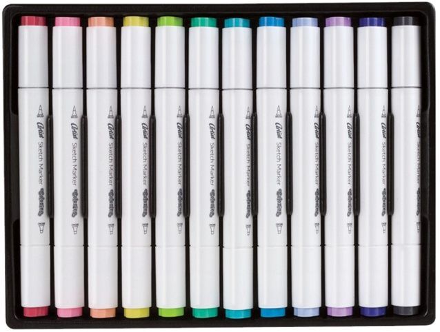 Jeden ve tvaru štětce pro výrobu jemných linek a druhý, široký se zkoseným hrotem určeným pro barvení větších ploch. Umožňují vytvořit dokonalý obraz, plán nebo skicu. Pro umělce a amatéry všech věkových kategorií. Pastelové barvy.