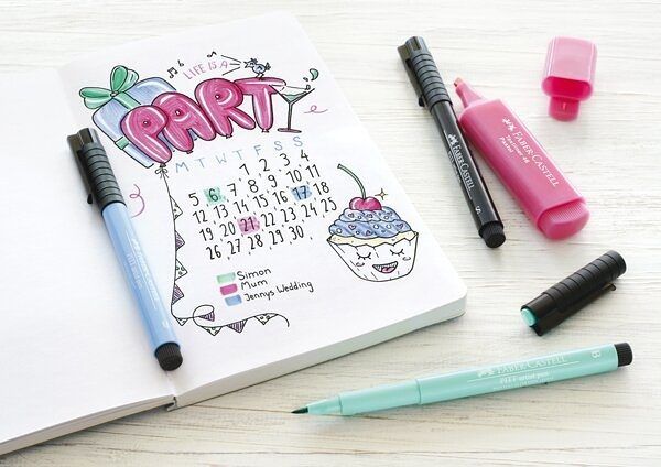 Startovací set pro bullet journal aktivity. Moderní umělecký popisovač se štětečkovým nebo kulatým hrotem.