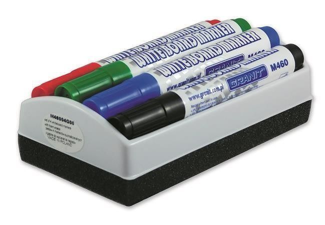Popisovače na bílou tabuli "M460", sada 4 barev s držákem, včetně houby, 2-3 mm, GRANIT