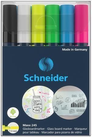 Popisovače na sklo "Maxx 245", sada 6 barev, 1-3 mm, SCHNEIDER