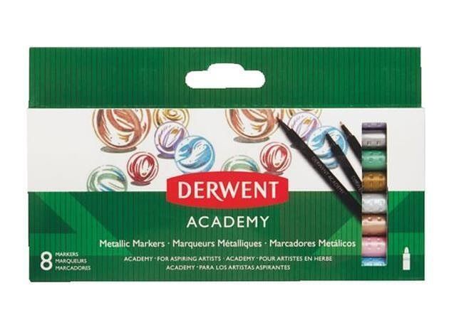 Popisovače "Academy", metalické barvy, sada 8 ks, DERWENT