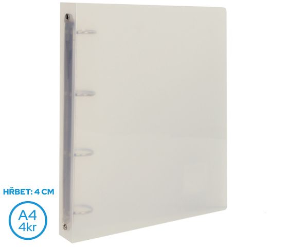 PP materiál- rozměr 245 x 315 mm- tloušťka 0,98 mm - 4 kroužky- hřbet 40 mm- vhodné pro ukládání děrovaných volných listů či dokumentů v eurosložkách