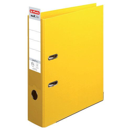 Pořadač A4/8 cm, maX.file protect plus, PP, kapsa na hřbetu, celobarevný, páková mechanika, prstokroužek, radokroužek, kovová lišta, žlutý