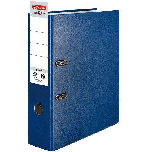 Pořadač A4/8 cm, maX.file protect, PP, kapsa na hřbetu, vnitřní bílý podlep, lepenka 2,2 mm, páková mechanika, prstokroužek, radokroužek, kovová lišta, modrý