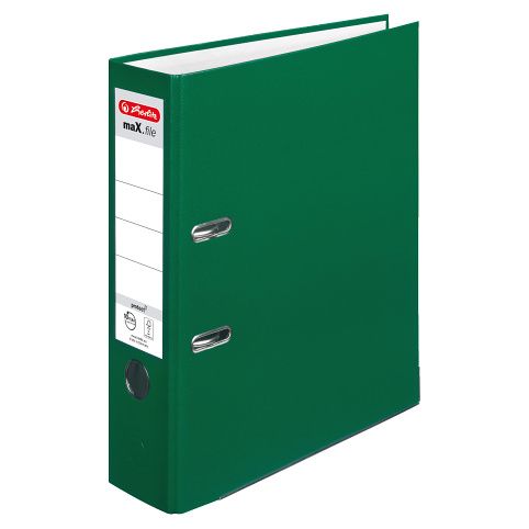 Pořadač A4/8 cm, maX.file protect, PP, kapsa na hřbetu, vnitřní bílý podlep, lepenka 2,2 mm, páková mechanika, prstokroužek, radokroužek, kovová lišta, zelený