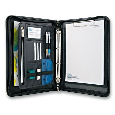 Uzaviratelné portfolio se zipem formátu A4, imitace kůže. Dodáváno bez obsahu.Rozměr 375 x 280 x 64 mm.