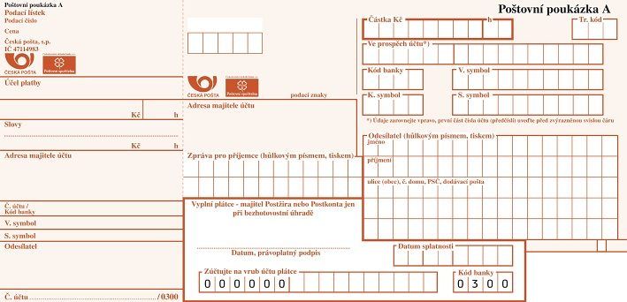 Poštovní poukázka typu A slouží jako nástroj vnitrostátního platebního styku pro převod peněžních částek v režimu „hotovost – účet”.