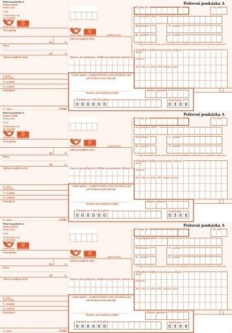 Nebaví vás ručně vypisovat údaje? Na všechny typy poštovních poukázek nabízíme zdarma možnost personalizace – předtisku vašich údajů. Ty vepíšete přímo při vytváření objednávky.