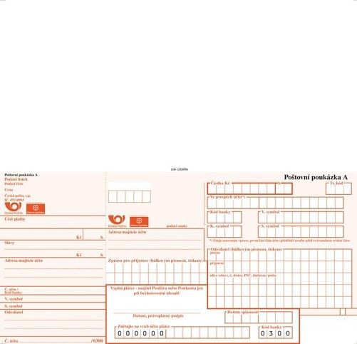 Poštovní poukázka A s alonží (prázdným polem) umožňuje dotisk obrázku, zprávy nebo reklamního sdělení.