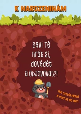 Přání s postřehovou hrou Tref krtka rozproudí každou narozeninovou oslavu. Otevřete přání, strefte toho správného krtka a vyhrajte! Součástí přání je i bílá obálka.