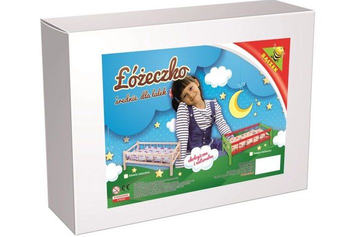 Krásná dřevěná - barevná - postýlka pro panenky s polštářem a peřinkou. Je vyrobena z kvalitních materiálů. Rozměr: 43x23x18cm