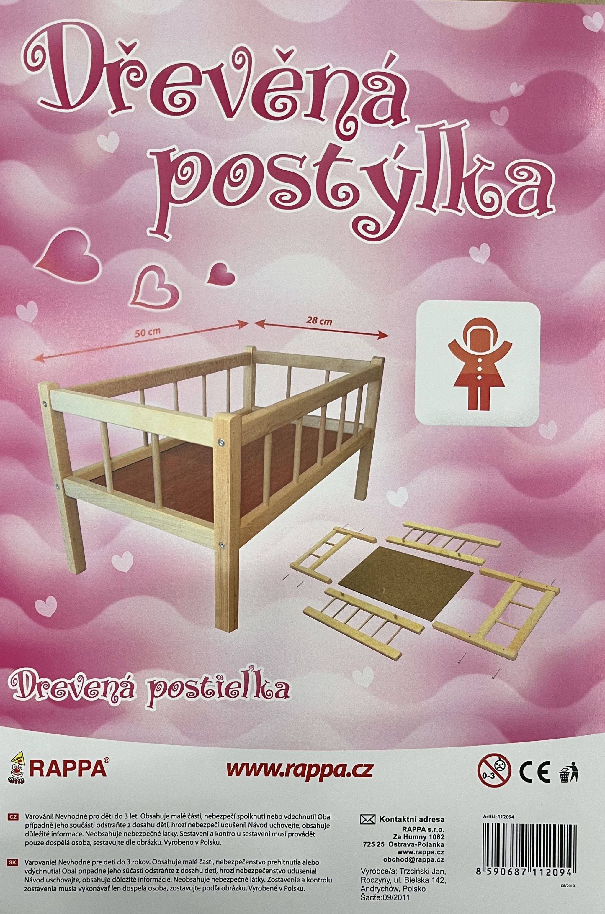 Jen pro tvou panenku je určena tato úžasná postýlka, ve které bude určitě spinkat jako v pohádce. Rozměr postýlky 50 x 28cm.